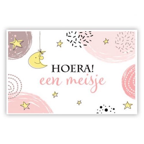 Webshop » Wenskaarten » Geboorte » Dochter » Roze Cirkel, Sterren En Maan W4-864