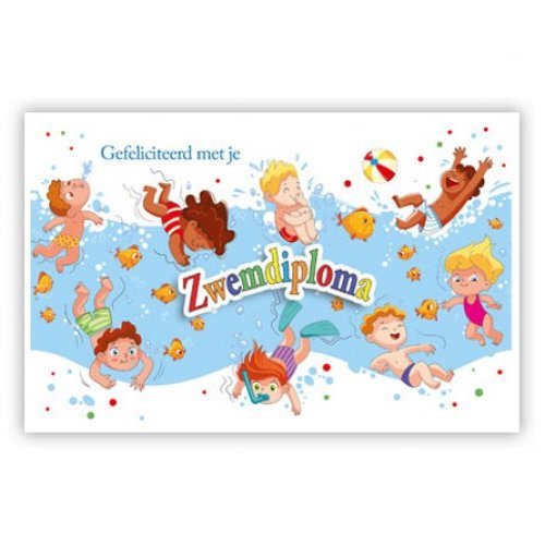 Webshop » Wenskaarten » Diversen » Zwemdiploma » Spelende Kinderen In Het Water W8-665