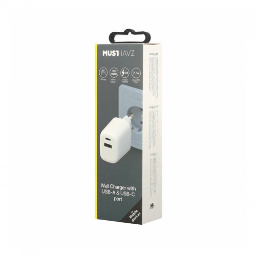 Webshop » Kantoorbenodigdheden » Musthavz - 2-Port PD Charger USB-A + USB-C 20W Wit